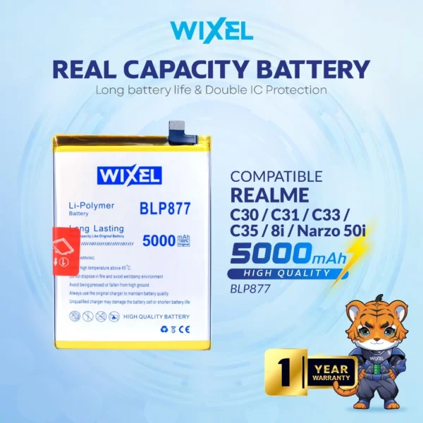 WIXEL Baterai Realme 8 / 8i / C30 / C31 / C33 / C35 BLP877 Double Power Real Capacity Batre Batrai Battery Original Ori BLP 877 HP Dual