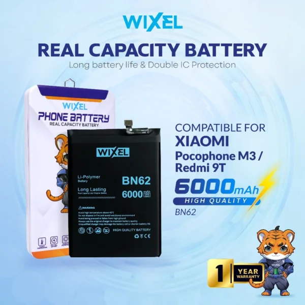 WIXEL Baterai Pocophone Poco M3 XiaoMi Redmi 9T BN62 100% Real Capacity Batre Batrai Battery Double Power Original Dual BN 62 Ori Phone