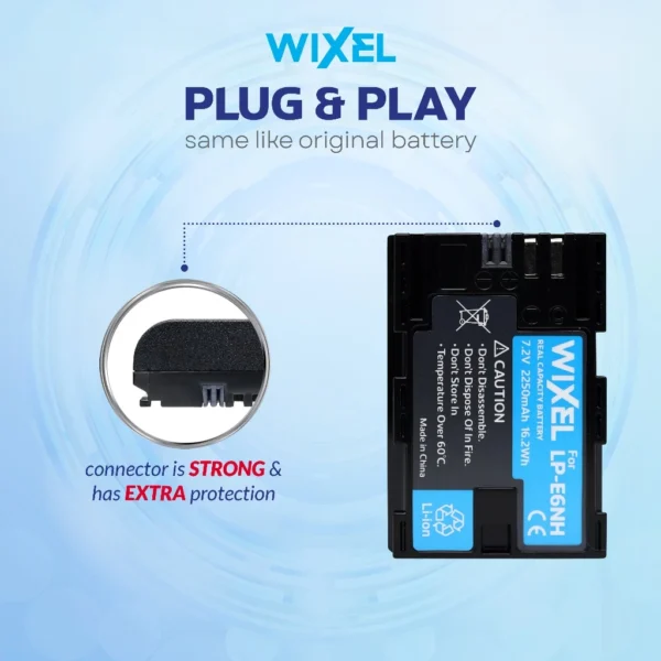 WIXEL Baterai Kamera LP-E6NH for Canon EOS EOS 60D / 60Da / 70D / 80D / 90D / R / R5 / R5C / R6 / R6 Mark II / R7 / XC10 Camera Battery Real Capacity Dual Double Power LPE6NH
