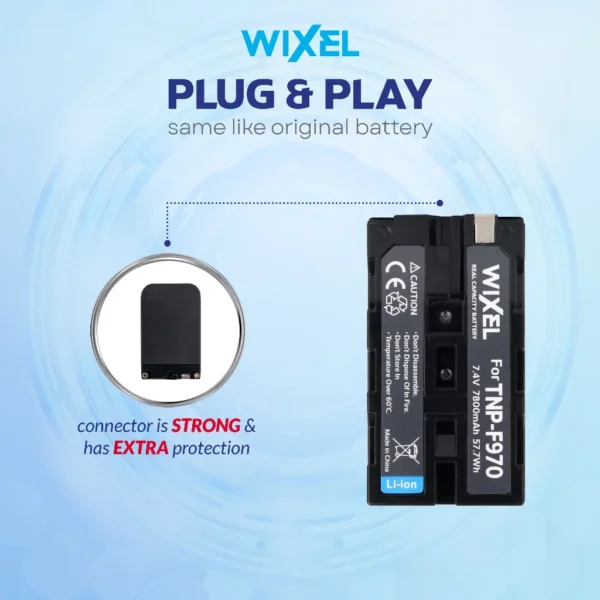 WIXEL Baterai Kamera TNP-F970 with Type C Port Charging for Sony NP-F570 / NP-F530 / NP-F550 / NP-F750 / NP-F770 / NP-F930 / NP-F950 / NP-F960 / NP-F970 / NP-F975 / NP-F990 / Camera Battery Real Capacity Dual Double Power Tipe C