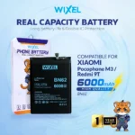 WIXEL Baterai Pocophone Poco M3 XiaoMi Redmi 9T BN62 100% Real Capacity Batre Batrai Battery Double Power Original Dual BN 62 Ori Phone