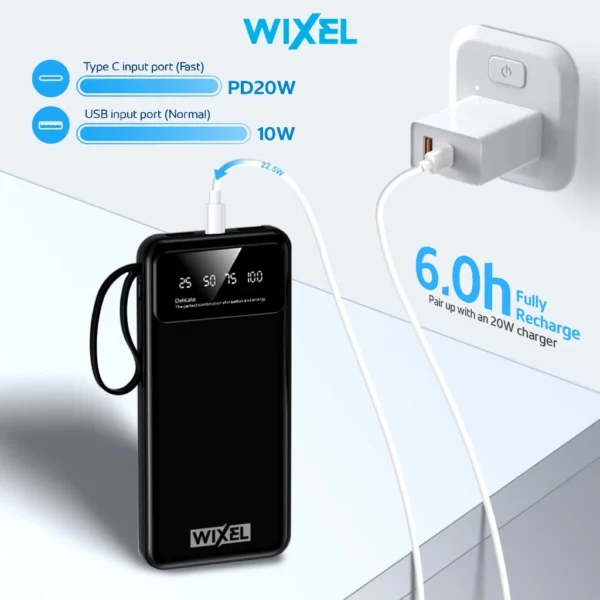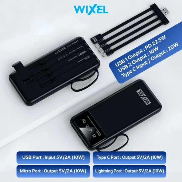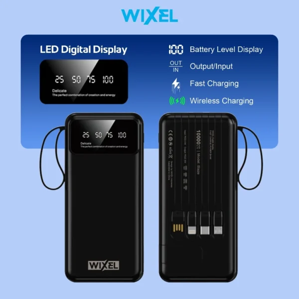WIXEL Powerbank BLAZE LED Digital Display 10000mAh 3A 22.5W Fast Charging Quick Charge PD with 4 Cable Kabel Type C Lightning